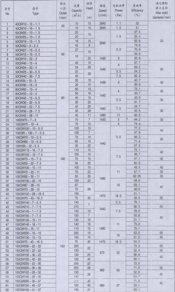 QW型系列混流式潛水泵系單級、單吸、軸向吸入、立式、機電一體、葉輪與電機軸直聯(lián),潛入泥漿、原油或清水等介質(zhì)中工作,輸送介質(zhì)的混合物比重為1:1-1:1.45。是油田石漬鉆井過程中抽送漿、清水或原油至循環(huán)泥漿池最理想的配套設備。也是電廠礦山、煉油、造紙、印染、環(huán)保、市政工程、化工、漁塘鹽廠、釀造、大理石廠、建筑、煤礦等行業(yè)抽排泥漿和污水理想的泵型。同時,也可根據(jù)用戶的實際使用要求及介質(zhì)情況,設計生產(chǎn)其它規(guī)格型號產(chǎn)品.